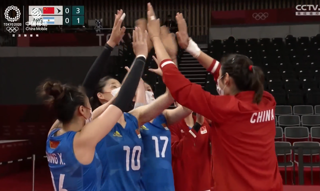 调整过后,李盈莹重扣得分,张常宁又是四号位打斜线打进界内,对手轻吊,李盈莹平打出界,女排19-11领先。阿根廷轰长线出界了,张常宁发球,对手二号位下球得分,阿根廷发球,中国女排一传直接飞了,调整回来,袁心玥下球迅速得分,对手轰斜线直接得分,张常宁轻吊回敬,对手四号位强攻得分,王媛媛快攻得分23-15。中国队再次得分,局点球,李盈莹发球,对方进攻质量不够,我们拦网封杀,25-15轻松拿下首局。朱婷轮休之后在场下也是给队友加油助威,递水给队友加油。