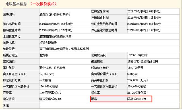 其中,地块限高280米,将打造一栋高度不低于245米的超高层塔楼,这将是淮安又一座摩天大楼!