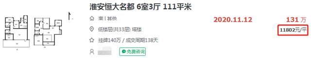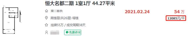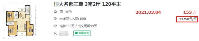 恒大名都共分为三期,当前小区二手房挂牌均价1-1.2万/㎡。