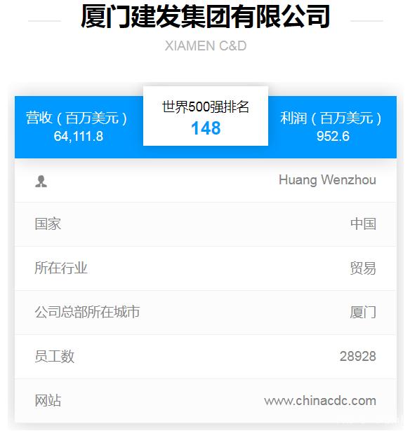 厦门建发集团在房地产开发领域形成了“建发房产"、"联发房产"两大品牌,今年《财富》世界500强位列148位。