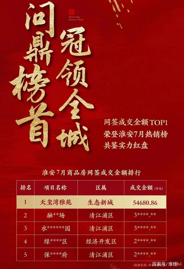 项目荣登淮安7月热销榜,网签成交金额54680.86万元,位列全市TOP1。