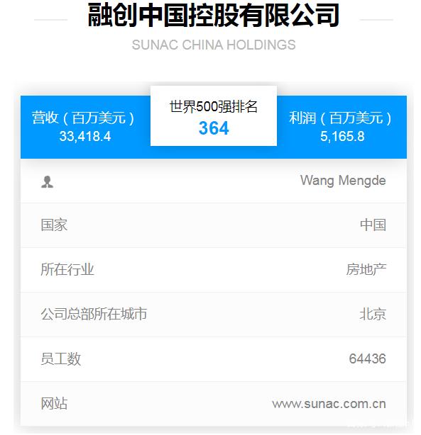 第364位!这是融创首次进入世界500强榜单,发展非常迅速!