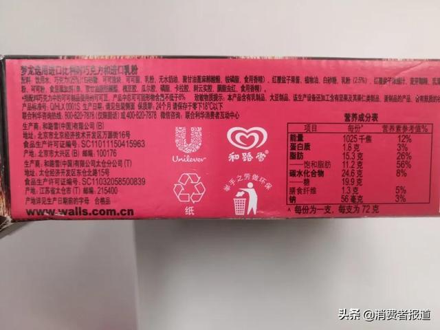 《消费者报道》在今年6月曾对15款雪糕进行主观测试,其中参加测试的有一款梦龙的产品。其产品成分表中确实无牛奶,而有的是饮用水、植物油、乳粉(2.5%)、乳清粉等成分。