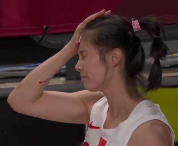 在上半场比赛中,中国队王思雨在比赛中,跟对手发生碰撞,血染赛场,经过包扎之后,再次登场,这就是奥运拼搏精神。