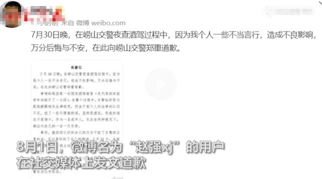 事情在网上造成较大的影响之后,第二天男子也感觉到事情好像大条了,所以就赶紧到交警中队去说明了情况。然后第三天又在网上发表道歉文,表示对当晚的事情感到“万分后悔与不安,在此向崂山交警郑州道歉”。