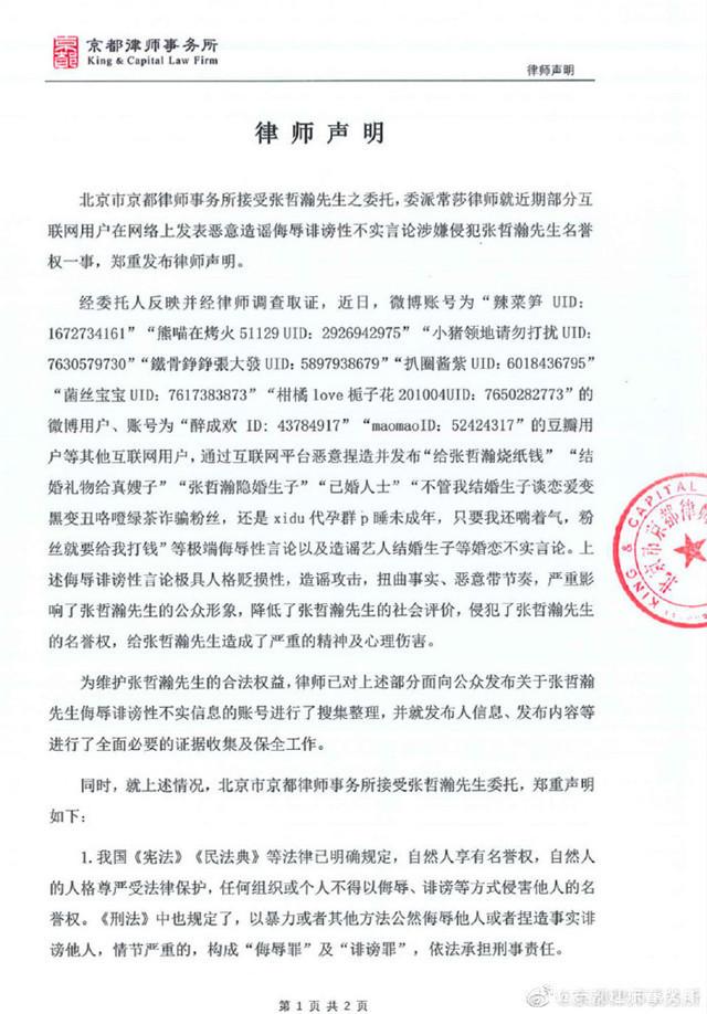 最近张哲瀚与王佩雯的一张亲密合照受到很多人的关注,关于两人的恋情绯闻也传得沸沸扬扬。七月二十九日,张哲瀚工作室发声明辟谣,否认了隐婚生子的传言。