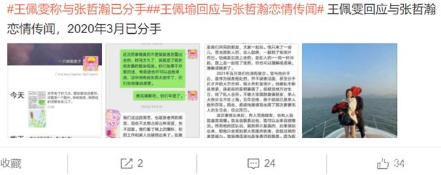 八月二日,王佩雯也在朋友圈发文回应与张哲瀚的恋情传闻,承认两人有着一段长达四年的恋情,但是已经在去年三月份分手了,目前,她和张哲瀚还是朋友关系。