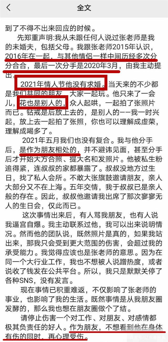 原本以为事情在张哲瀚工作室发布声明后已经平息了,现在看来,王佩雯还是受到了不少伤害。她这次主动站了出来将照片的事情都解释清楚了,但是那张照片她和张哲瀚的动作的确十分亲密,再配上一张戴着钻戒的手,的确很容易让人想歪。作为张哲瀚前任,还能被对方爸爸邀请去参加生日会,这样的关系实在是好到离谱了。