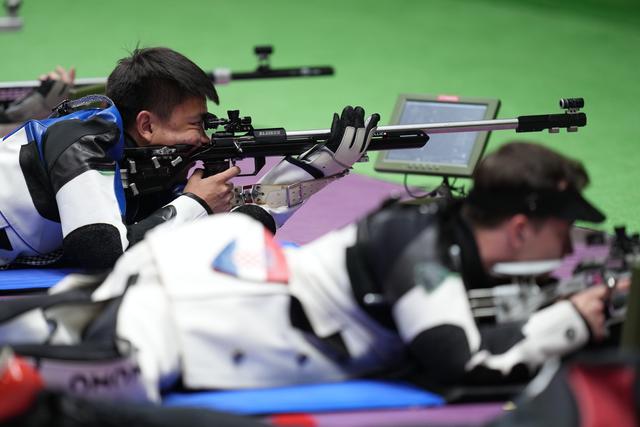新华社照片,东京,2021年8月2日 (东京奥运会)(4)射击——男子50米步枪三姿决赛:中国选手张常鸿夺冠 8月2日,中国选手张常鸿在比赛中。 当日,在东京奥运会射击男子50米步枪三姿决赛中,中国选手张常鸿夺冠。 新华社记者 鞠焕宗 摄