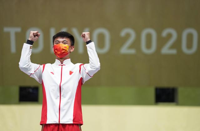 新华社照片,东京,2021年8月2日 (东京奥运会)(9)射击——男子50米步枪三姿决赛:中国选手张常鸿夺冠 8月2日,中国选手张常鸿在颁奖仪式上。 当日,在东京奥运会射击男子50米步枪三姿决赛中,中国选手张常鸿夺冠。 新华社记者 鞠焕宗 摄