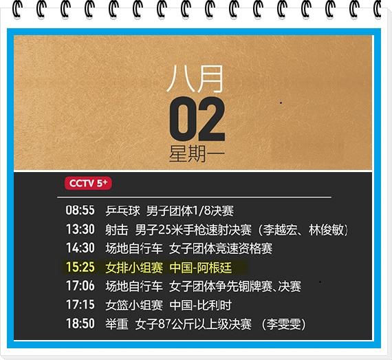 ⑤中国女排vs阿根廷:8月02日(周一),15:25/CCTV4K;