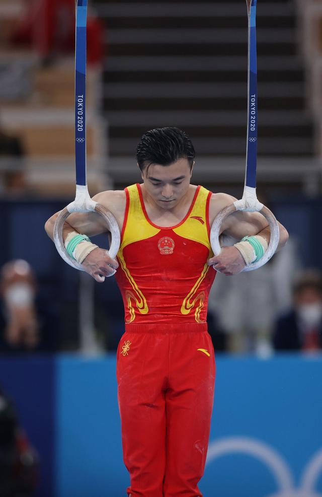 见铜、见银,始终不见金。这对志在东京奥运会打翻身仗的中国体操男队来说,过去的几天是憋屈的。剩下的两个单项,吊环和双杠是最后的夺金机会。今天的吊环决赛,第二个出场的尤浩表现不错,以全场最高难度(6.6)的动作,得分15.300。接下来上场的刘洋更是完美表现,拿下了全场最高的15.500分。