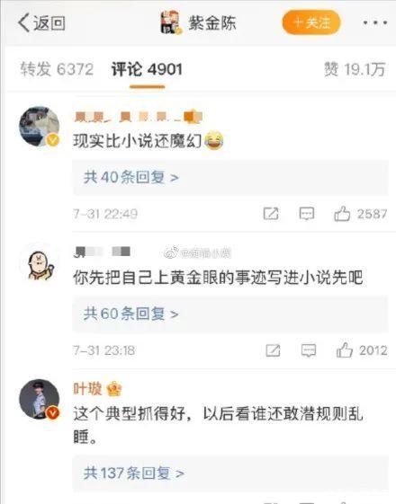 叶璇在紫金陈微博下面评论“这个典型抓得好,以后看谁还敢潜规则”,这番话和她现在这个头像很适配。