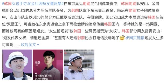 韩国射箭选手拿下奥运会金牌,却因短发遭网暴, 韩国网友认为短发代表女权,让她退还金牌;再看看福原爱在日本的待遇,竟然登上了“不伦艺人排行榜”首位,远超东出昌大和渡部建。