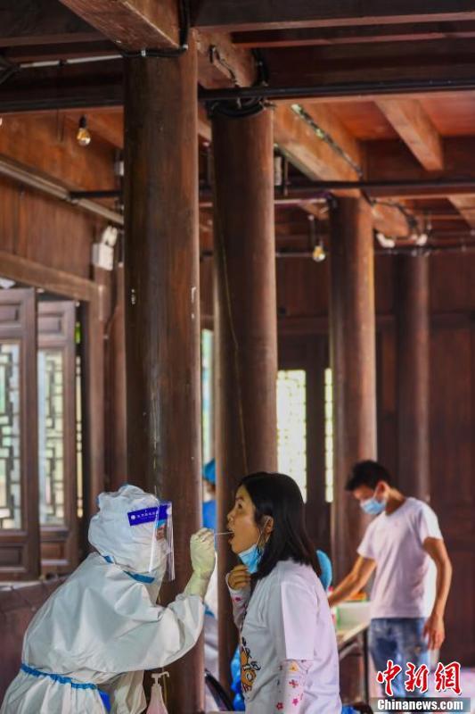 8月2日,南京市秦淮区门东历史街区核酸检测点内,市民接受核酸检测取样。