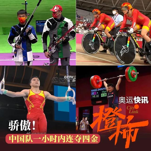 【摘要】 「本文来源:都市快报」今天下午,不到1小时,中国连夺四金!东京奥运第十个比赛日,中国军团在沉寂了多半天后,在举重、体操、射击和自行