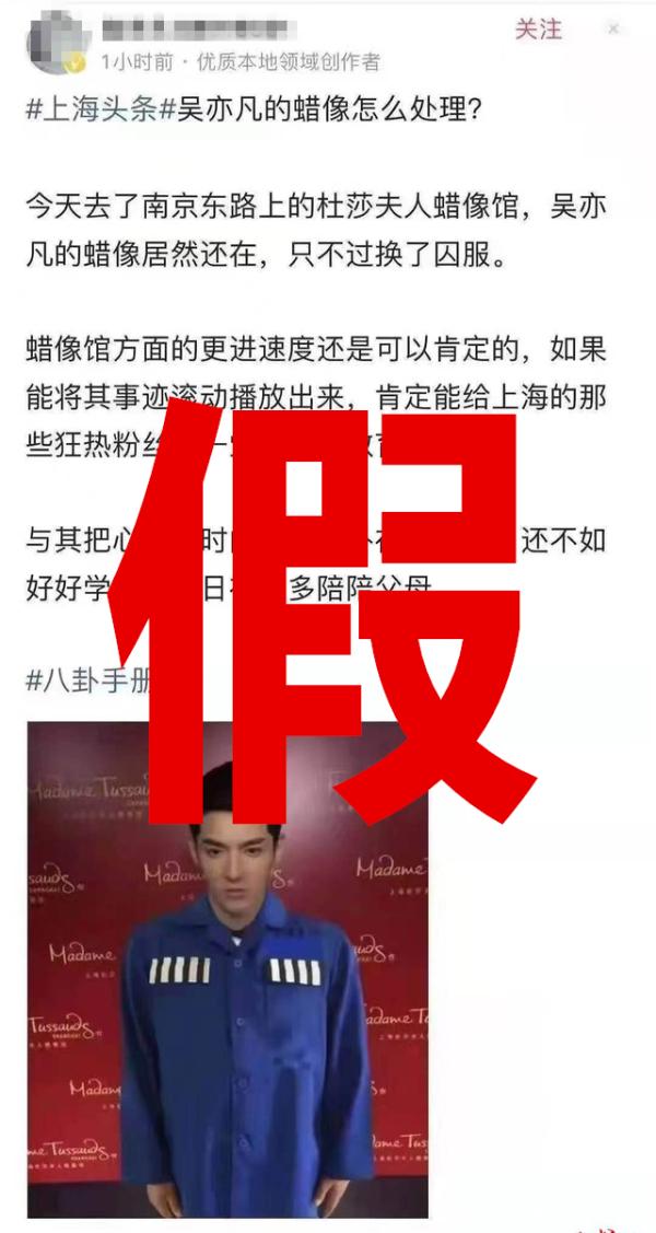 那这么看的话,“囚服版吴亦凡蜡像”多半是网友P图了,别说,PS技术还挺不错,不然不会让这么多网友信以为真。