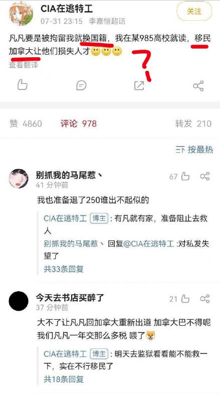 网友机智地反问:“回加拿大300块够吗?(确定不是少打了一个“万”?)”