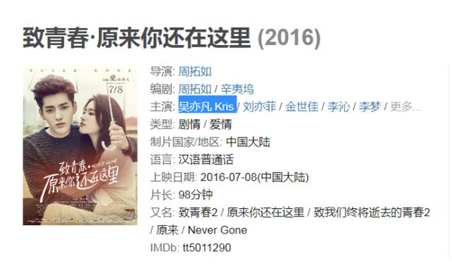 吴亦凡混迹娱乐圈10年,翻车前也算是圈内的男顶流之一,不谈演技如何,影视作品多多少少还是有几部的,比如《致青春:原来你还在这里》《青簪行》《夏有乔木,雅望天堂》。