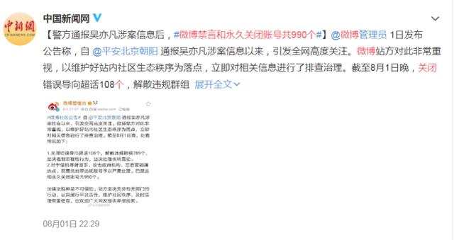 8月2日,WB一条热搜映入公众眼帘:禁言和永久关闭账号共990个。