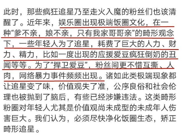 央视痛斥极端饭圈文化,在一种“爹不亲,娘不亲,只有我家哥哥亲”的畸形观念下,一些年轻人为了追星,已经多次做出不理智的行为。