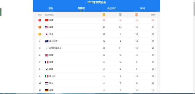 最后一起来看一下截至8月2日19点的最新奥运奖牌榜吧!