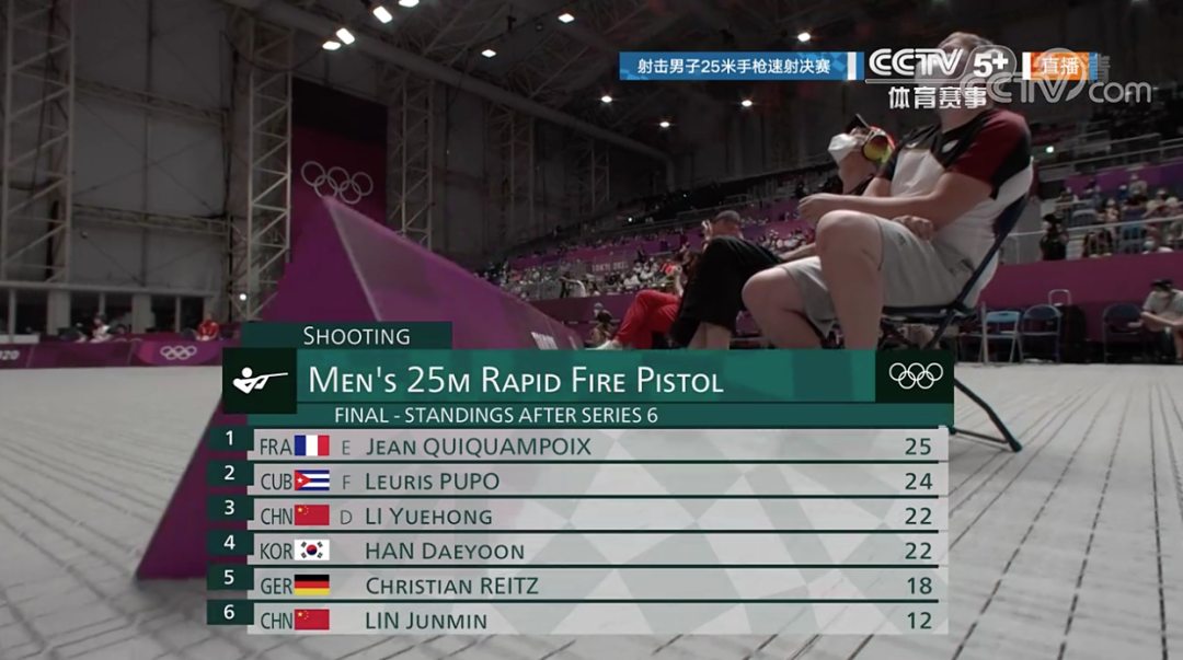 在东京奥运会男子25米手枪速射决赛中,中国选手李越宏获得第三名,为中国射击队再添一枚铜牌!祝贺李越宏另一名中国选手林俊敏获得第六名。
