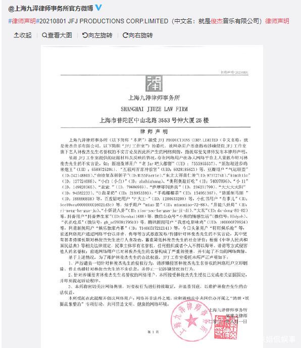 而林俊杰方面面对这种无中生有的举报,自然直接委托律师事务所对其进行回应,在声明中表示当下有部分网络用户利用不实言论煽动舆情,对林俊杰先生产生一些不好的影响,要求其主体立即删除不实言论且进行道歉,否则将会追究其法律责任即可提起诉讼。