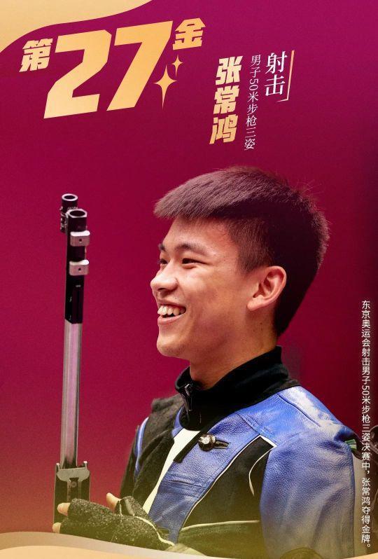 中国射击队青春风暴继续刮!北京时间8月2日下午,在射击男子50米步枪三姿决赛中,21岁的张常鸿以466环的成绩打破世界纪录、奥运会并夺冠。这是中国代表团在本届奥运会上的第27金。在张常鸿拿下这枚金牌后,东京奥运会射击项目全部结束,中国射击队一共获得了4金1银6铜,表现十分出色。