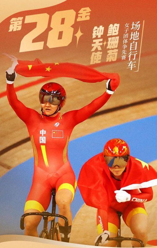 中国军团掀起夺金风暴!北京时间8月2日下午,在场地自行车女子团体争先赛决赛中,中国组合钟天使/鲍珊菊击败德国搭档,为中国代表团收获第28金。当天下午不到一个小时,中国军团在举重、体操、射击及自行车项目上收获四金。