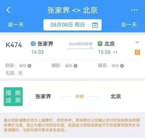 今天,记者登录12306网站发现,从8月2日开始到8月16日,南京、南京南、郑州、郑州西、郑州东、巩义南等车站开往北京各车站的高铁、普速列车车票状态都已显示为灰色,无法点击购买。8月2日至8月6日,查询不到北京抵达张家界火车站列车,但从8月7日开始,显示北京至张家界开始有1趟列车,为K473/4次列车,终点站为昆明站。目前,这趟列车北京至张家界往返都显示无法购票,至昆明购票均正常。
