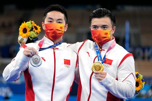 兄弟俩刘洋、尤浩拥抱庆祝包揽金银。