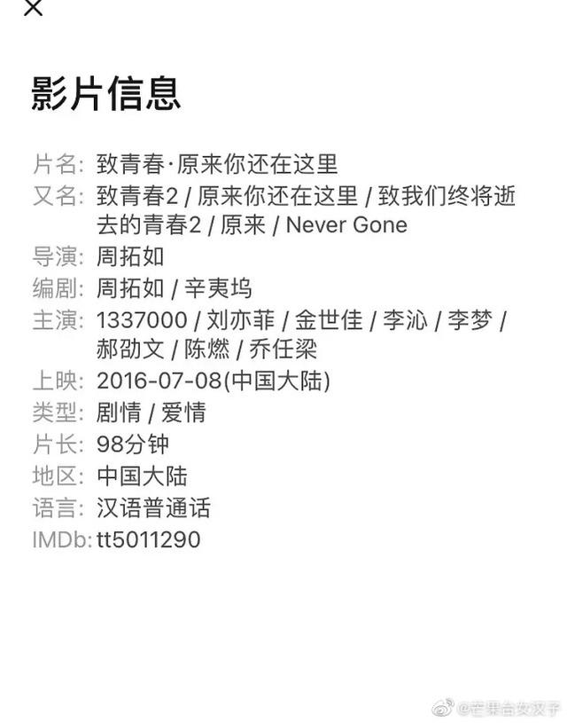 众所周知,吴亦凡和刘亦菲曾经的电影反响还是不错的,但是现在吴亦凡曾经的作品也被代号所代替。