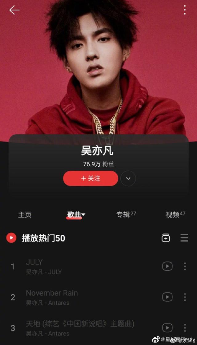 根据网友们的查询,目前他的微博、DY、今日头条、百度百家号、微博超话、贴吧、爱奇艺泡泡圈、腾讯视频、央视影音、豆瓣人物主页也都没了,网易云音乐、QQ音乐、酷狗音乐、咪咕音乐下架吴亦凡所有歌曲!