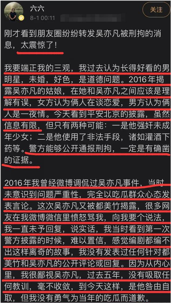 著名编剧六六也出来和公众道歉了,为曾力挺吴亦凡而道歉真是讽刺啊!