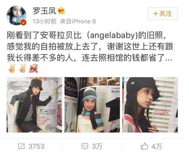 凤姐的自信也不知从何而来的,对很多美女都看不顺眼,杨颖也成了她狂喷的对象。一次在网上发文说:“刚看到了Angelababy的旧照,感觉我的自拍被放上去了,谢谢这世上还有跟我长得差不多的人,连去照相馆的钱都省了。”