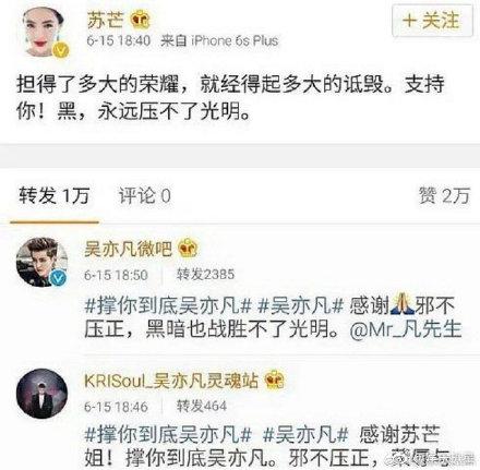 苏芒作为一个很有影响力的媒体人,在事情没有得到证实之前,就力挺吴亦凡,说:担得了多大的荣耀,就经得起多大的诋毁,支持你!黑,永远压不了光明。