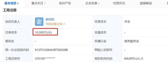 但其实公司的注册资本是认缴制,自己填的,不用验资,谢明皓填这么高,可能是想显得“国际”一点吧。
