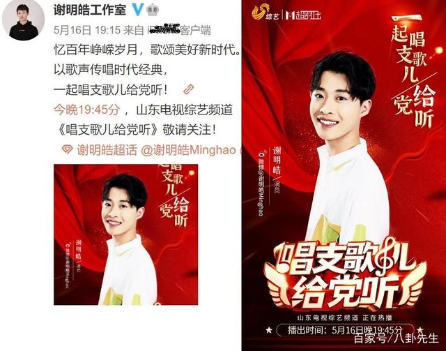 但其实这个只是山东卫视搞的网络征集活动,难得“上节目”,谢明皓工作室连个节目片段都没放出来,就放了几段自娱自乐的唱歌视频。