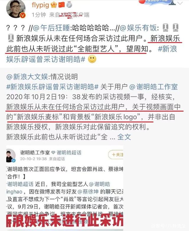 请问哪个大咖记者会只有两个媒体呢?所谓新X娱乐和腾X娱乐,从未发过任何关于谢明皓的内容,所谓的台标和背景板上的logo,其实都是谢明皓自己伪造的,这是很明显的侵权行为。新X娱乐今天已经辟谣采访过他。