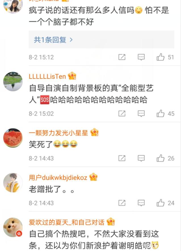 这么说吧,谢明皓和其他想要上位的网红一样,都在试图通过黑化明星来博取观众眼球!