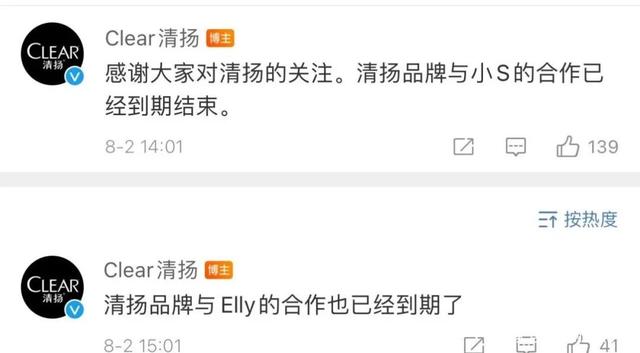 但虽然小S没有回应,不过内地方面有关她和她女儿们的代言品牌已经“有所行动”。首先是小S代言了十几年的清扬品牌,率先发出声明已经和小S以及她的女儿的合约到期。
