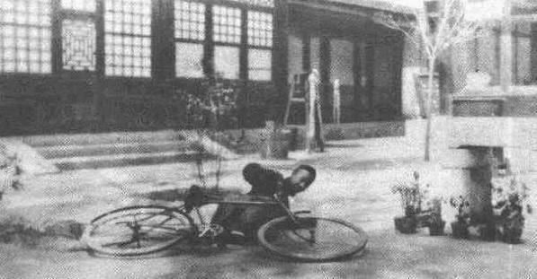 溥仪骑车摔倒