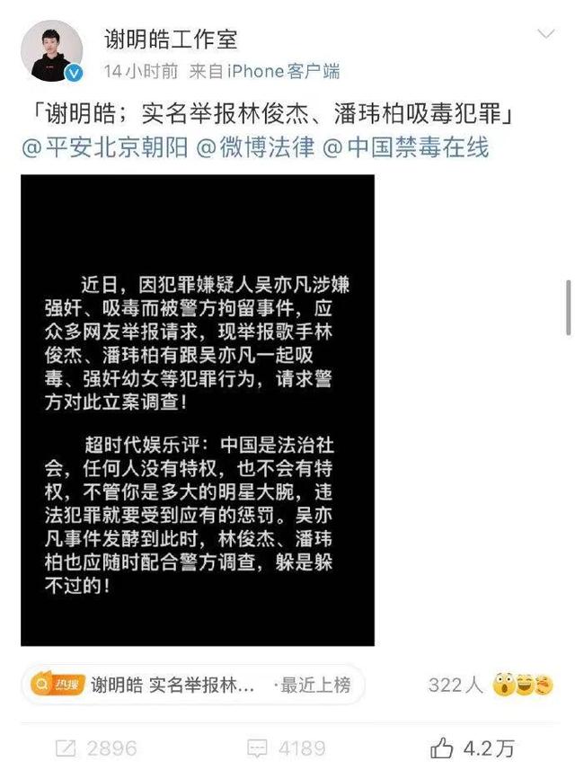对于谢明皓工作室的举报,林俊杰和潘玮柏都已发布律师声明,将进行维权。