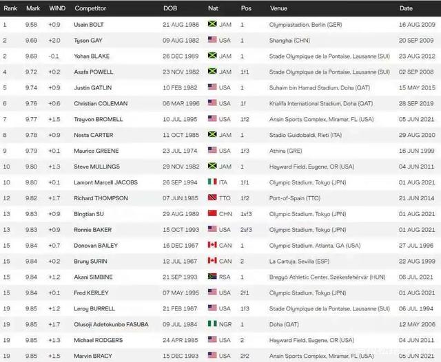 在全球男子百米历史上,截止到目前,苏炳添排名历代第13位,前12名均是非洲后裔选手。