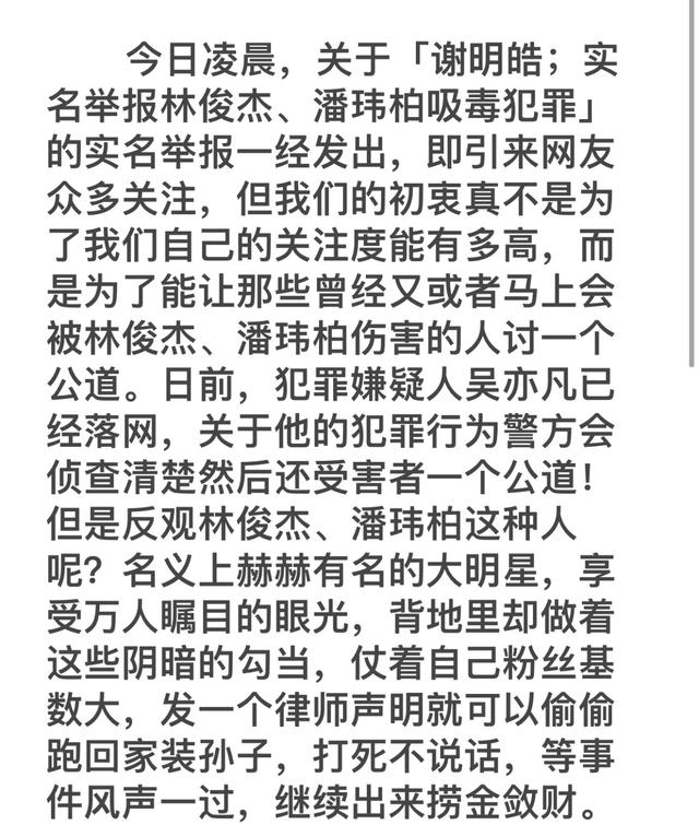 这一爆料真的是让人十分震惊,不敢相信,但是谢明皓工作室接连发布好几条内容,并艾特相关的官方微博进行实名举报,称自己已掌握相关证据,请求官方部门对他们两人进行专业检测,并承诺,如果两人没有问题,自己愿意承担法律责任!