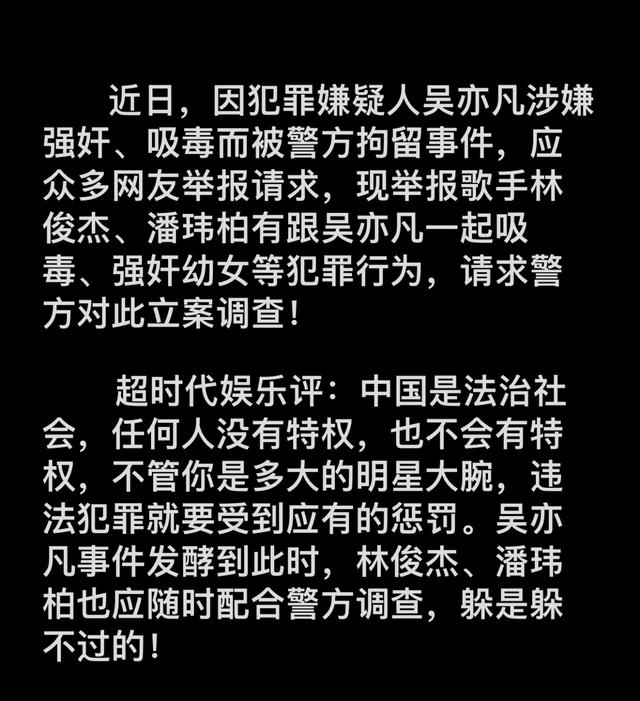 被吴亦凡牵连的还有台湾很有名气,也算是在乐坛有一定地位的两位歌手,一个是林俊杰,另一个就是潘玮柏!