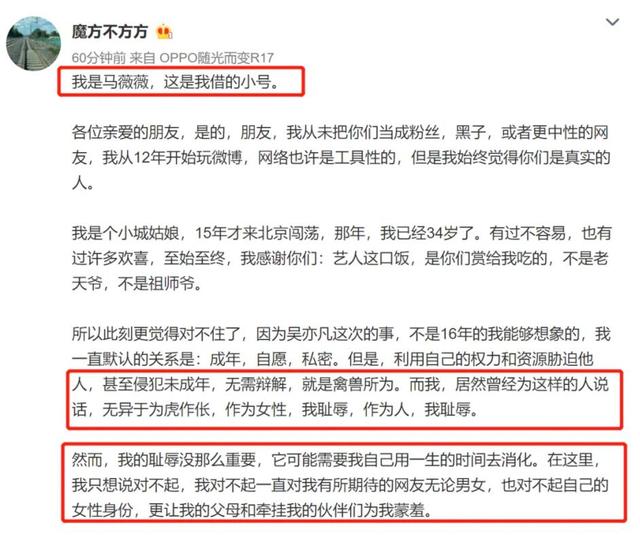 因此在应对账户封号,各大网站谴责的形势下,明白顺势而为的马薇薇回复了。