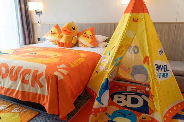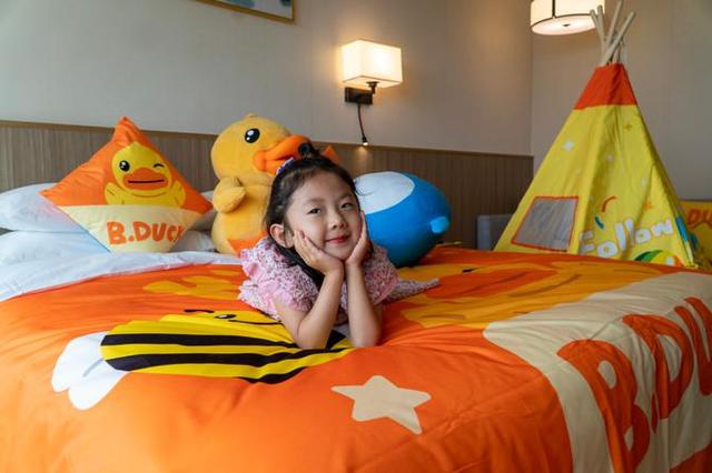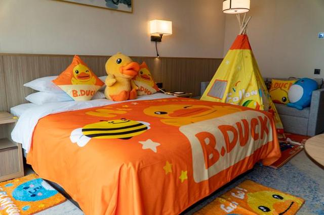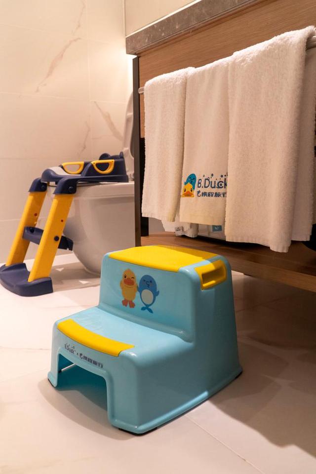酒店正好推出了暑期小黄鸭主题亲子房,打开门的一瞬间感觉进了一个童话世界,缤纷可爱的色彩尽收眼底,小黄鸭主题床罩&公仔,从毛巾,牙刷到拖鞋,从地毯到帐篷全是小黄鸭,都是小黄鸭的布置,连马桶的小凳子也是和小黄鸭有关的衍生品,,小朋友很喜欢,就算不出门也可以把酒店当游乐场。