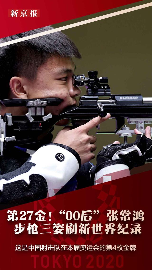8月2日,东京奥运会射击项目的所有比赛在朝霞射击场结束,最后一项比赛为男子50米步枪三姿决赛。出生于2000年的张常鸿顶住压力,以总成绩466环夺得冠军,同时刷新了奥运会纪录和世界纪录。这也是中国射击队在本届奥运会的第4枚金牌。第27金!“00后”张常鸿步枪三姿刷新世界纪录